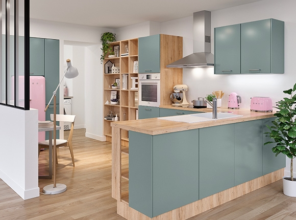 Le papier peint s'intègre très bien dans une cuisine.