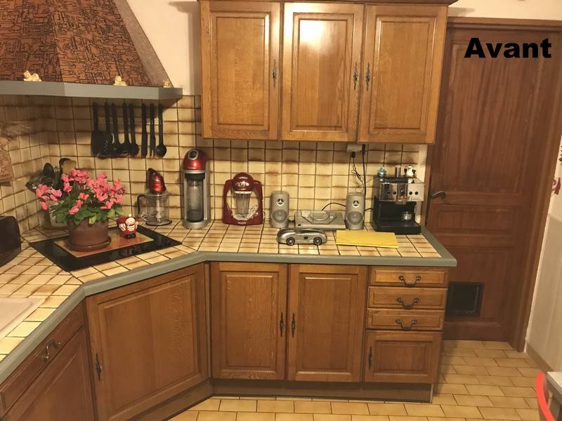 Idée Relooking Cuisine En Chêne. Une grande bibliothèque deux corps, la partie centrale ouverte le tout en chêne massif. La cuisine avant son relooking en chêne massif, un peu ancienne cette cuisine très foncée avait besoin d'un petit coup de jeune avec des teintes plus claires et plus gaies.